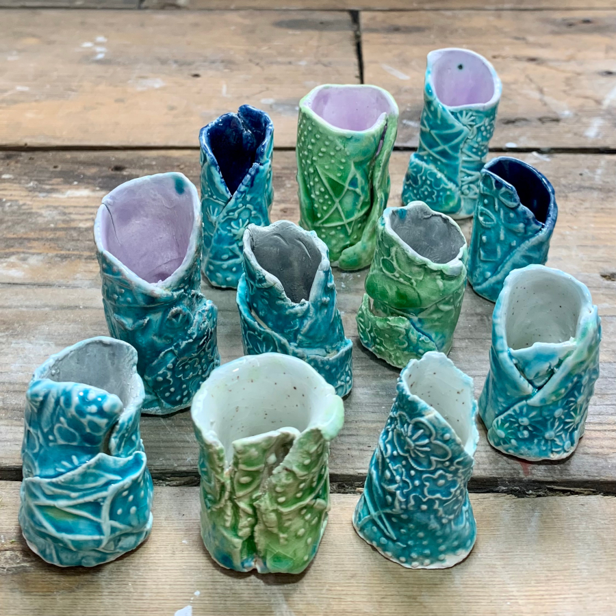 My mini spill vases are created using twists of thin textured dragon skin. Each vase is individually made so no two are the same.