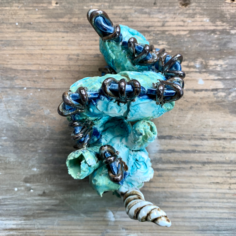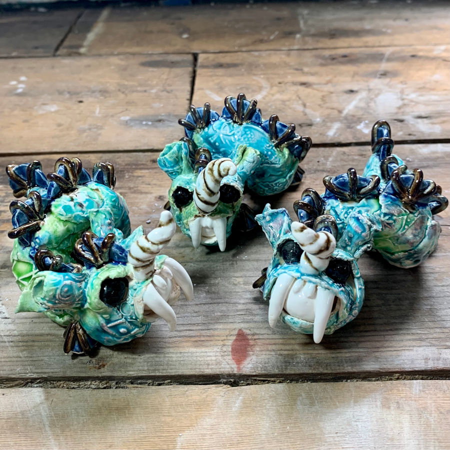 My small Guardian Dragons are constructed from small extruded coils of clay wrapped in textured dragon skin.